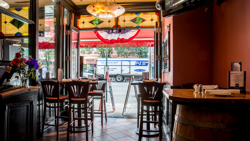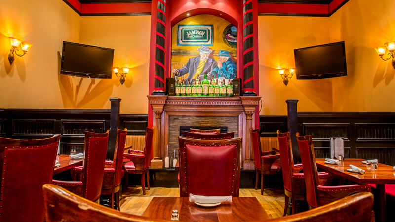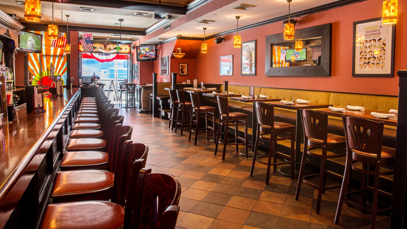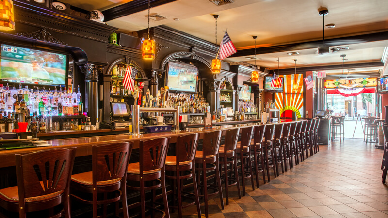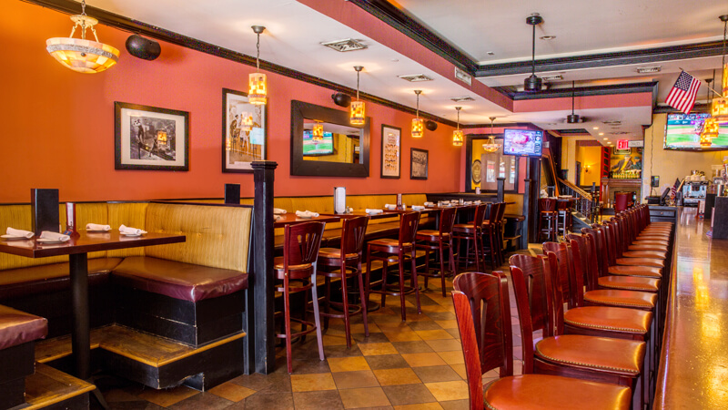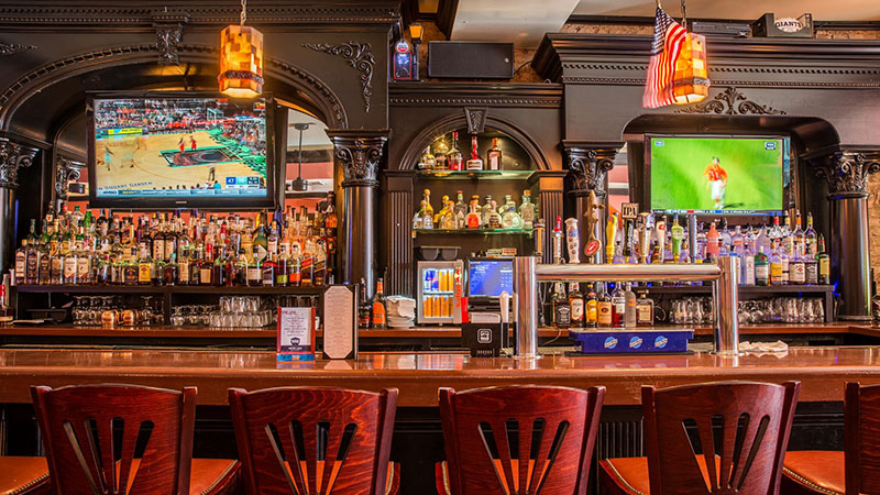 13 flat screen TVs throughout the bar showcase all major sports events.